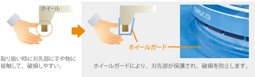ホイールの刃先部分は非常に脆いため、何らかと接触があるとダメージを受けてしまいます。取り扱いには十分にご注意ください。